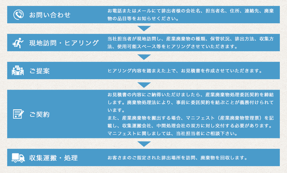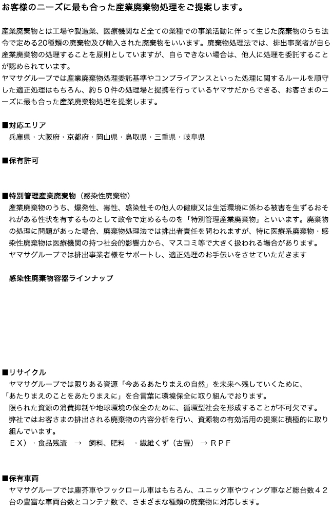 サービス内容 〜 産業廃棄物・特別管理産業廃棄物収集運搬 〜
